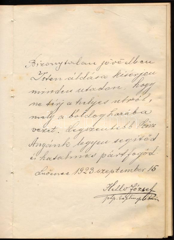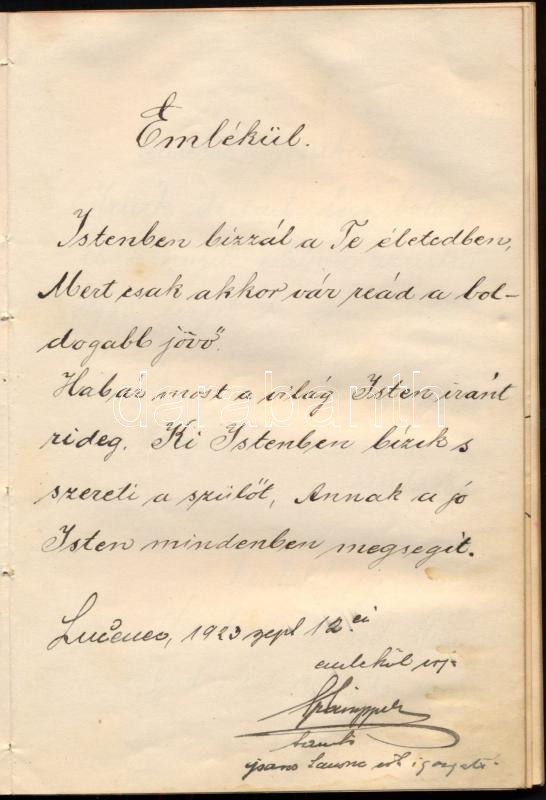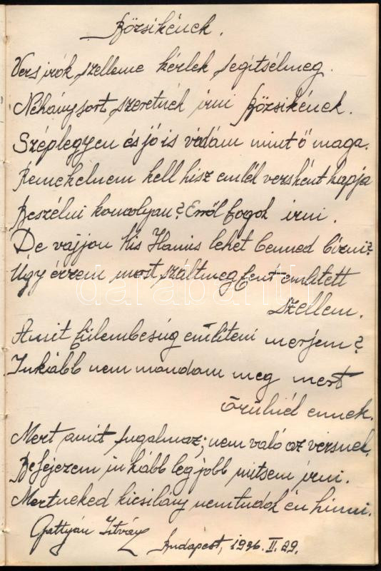 1922-1936 Régi emlékkönyv, Losoncon és Budapesten kelt bejegyzésekkel, rajzokkal, lapszéli ázásnyomokkal