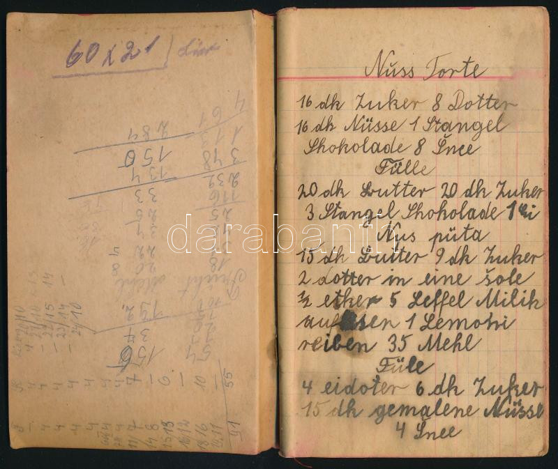 cca 1900 Kézzel írt német nyelvű receptfüzet, ázásnyomokkal