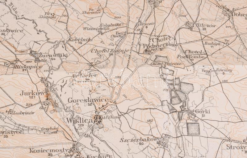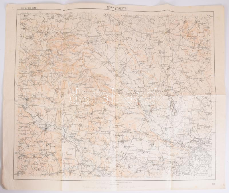cca 1915 Nowy Korczyn (Lengyelország) környékének katonai térképe, 1 : 75.000, kis vágásból eredő sérüléssel, 42,5x54 cm