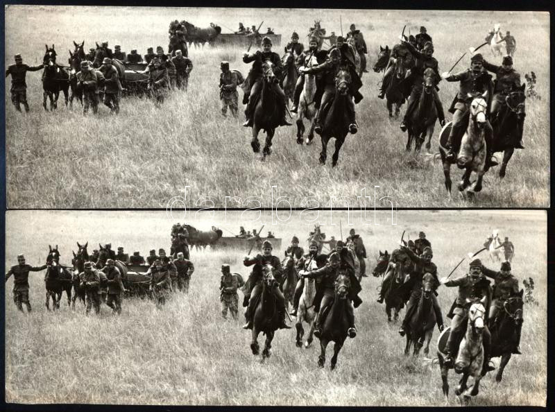 2 db katonai témájú (filmjelenetet ábrázoló?) fotó, jelzés nélkül, 6,5x18 cm