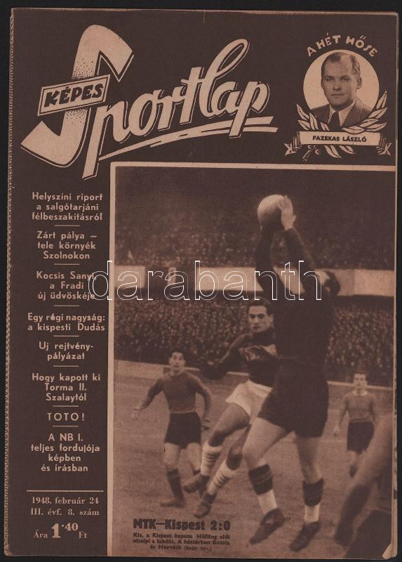 1948 A Képes Sportlap III. évfolyamának 8. száma, címlapon az MTK-Kispest 2:0 meccs fotójával