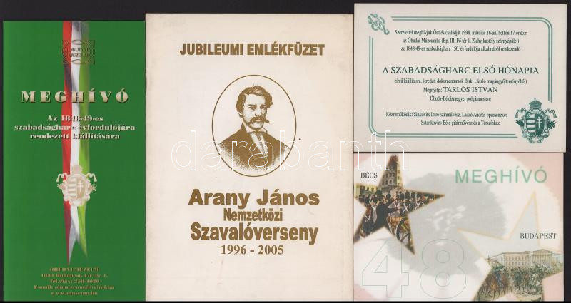 Vegyes meghívó tétel főként 1848-49-es megemlékezésekkel kapcsolatban (Meghívó az 1848-49-es szabadságharc évfordulójára, Arany János Nemzetközi Szavalóverseny, stb.)
