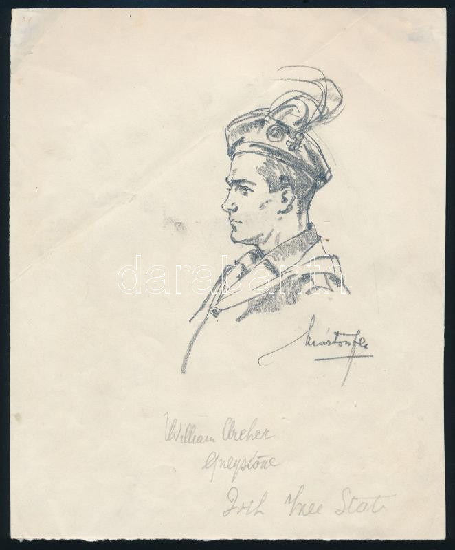 Márton Ferenc (1884-1940): 1933 Gödöllői Jamboree - Ír cserkész dedikált fotója. Ceruza, papír, jelzett, / Scout Jamboree 1933. Gödöllő, Irish scouts autograph signed drawing. Pencil drawing 20x18 cm