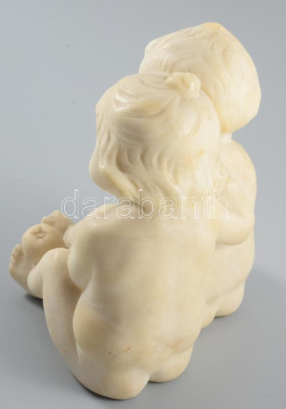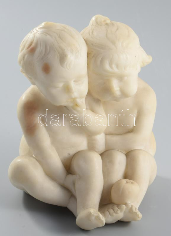 Fritz Kochendörfer (1871-1942): Gyermekek. Alabástrom, alján jelzett, München, 1890 körül. Korának megfelelő kopásokkal, egy két apró lepattanással. m: 16 cm