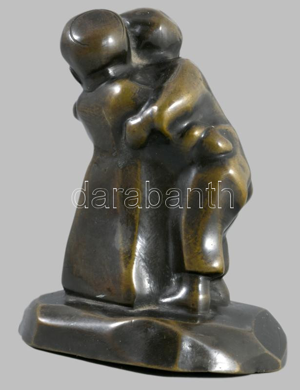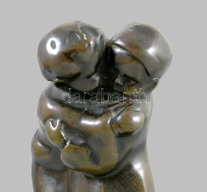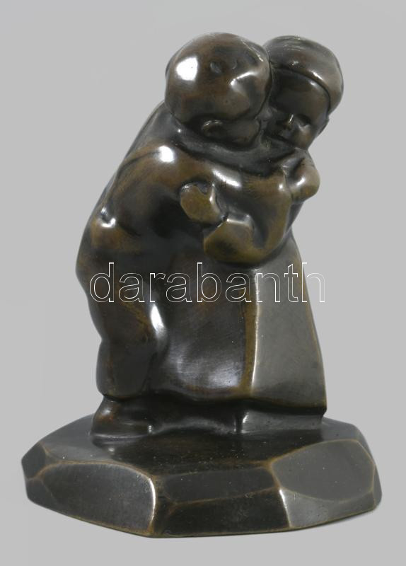 Gnädig Sándor (1887?-?): Testvéri szeretet, bronz, jelzett, kis kopásokkal, m: 12 cm
