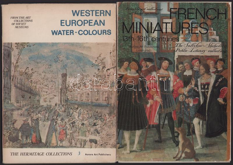 Western European Water-colours. + French Miniatures. Leningrad, 1973-1984, Aurora, 16 t.; 16 t. Kiadói papírmappákban.