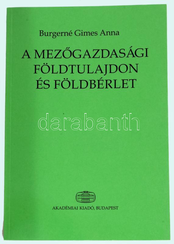 Burgerné Gimes Anna: A mezőgazdasági földtulajdon és földbérlet. Bp., 2002, Akadémiai. Kiadói papírkötés.;