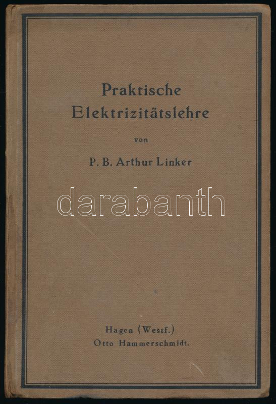 Linker, P. B. Arthur: Praktische Elektrizitätslehre. Auf der Grundlage der Elektronentheorie dargestellt von - - . A szerző által dedikált példány! Hagen, 1921, Otto Hammerschmidt, XII+199+[1] p. Német nyelven. Kiadói egészvászon-kötés, kissé foltos gerinccel.