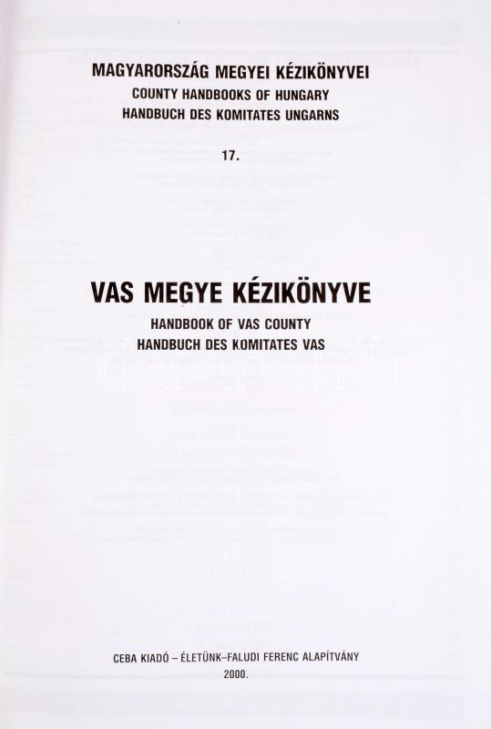 Dr. Kasza Sándor (szerk.): Vas megye kézikönyve. Magyarország Megyei Kézikönyvei 17. 2000, CEBA. 703p. Kiadói kartonált kötés, jó állapotban.