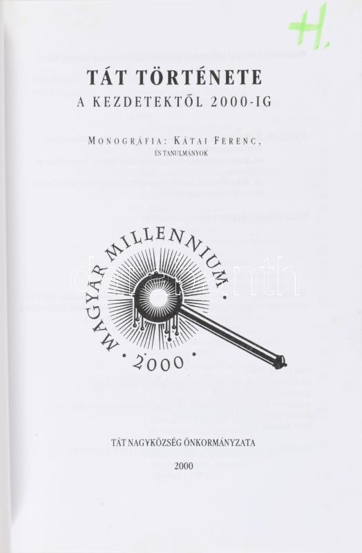 Tát története a kezdetektÅ‘l 2000-ig. Monográfia: Kátai Ferenc, és tanulmányok. Szerk.: Bárdos István. Tát, 2000, Tát Nagyközség Önkormányzata. Megjelent 1000 példányban. Kiadói papÃrkötés.