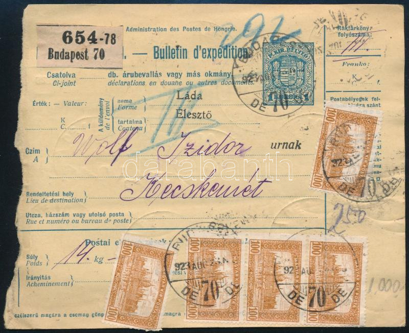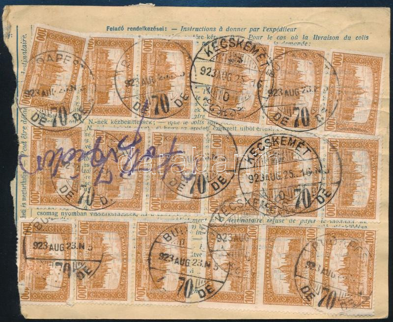 1923 Csomagszállító 23 x 100K bérmentesítéssel / Parcel card with 23 x 100K franking