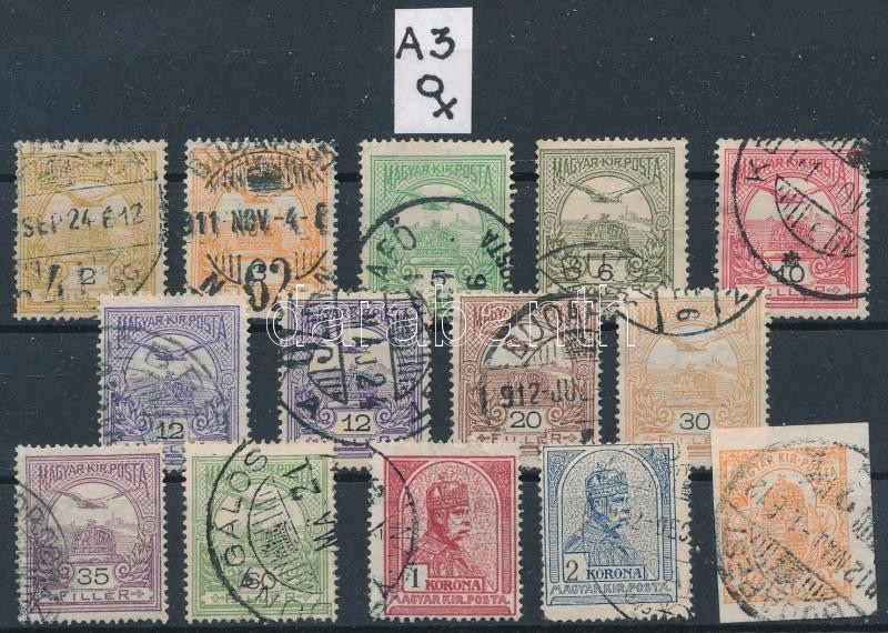 1909 Turul 13 klf érték + hírlapbélyeg A3 vízjelállással