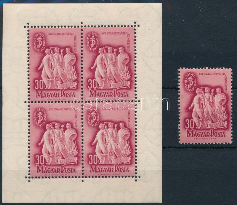 1948 Szakszervezet (II.) bélyeg + kisív (betapadás nyom) (7.200)