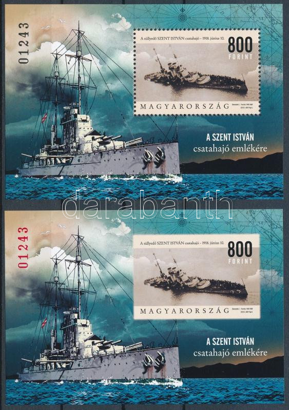 2018 A Szent István csatahajó emlékére fogazott + vágott blokk (28.000)