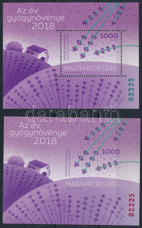 2018 Az év gyógynövénye: valódi levendula túlfogazott blokk zöld sorszámmal + vágott blokk piros sorszámmal (17.000)