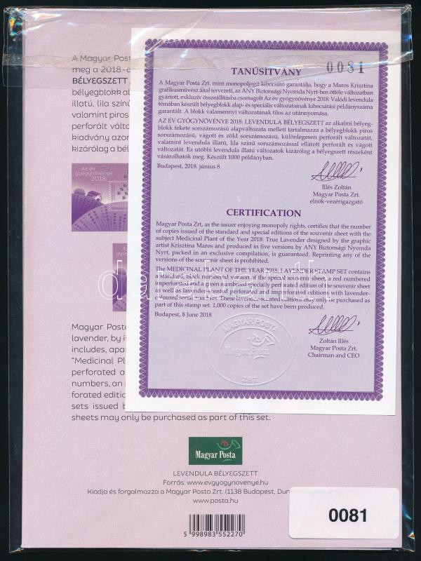 2018 Levendula az év gyógynövénye bélyegszet (52.000)