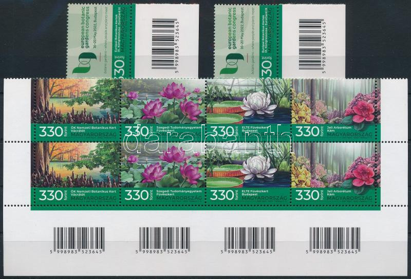 2022 Magyarországi arborétumok és botanikus kertek I. ívsarki vonalkódos nyolcastömb + 2 db vonalkódos önálló záróérték, összesen 2 teljes sor