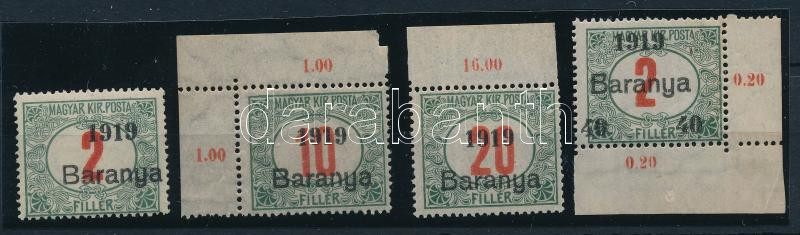 Baranya I. 1919 Pirosszámú portó 2 x 2f, 10f és 20f, Bodor vizsgálójellel