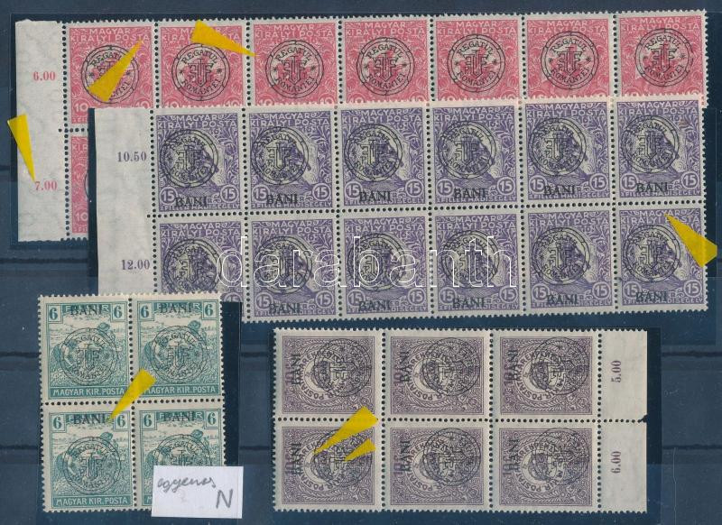 Kolozsvár 1919 4 db klf összefüggés, mindegyikben egyenes N a felülnyomásban, Bodor vizsgálójellel