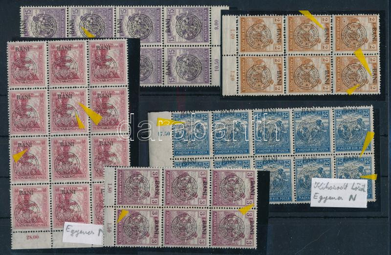 Kolozsvár 1919 5 db klf összefüggés, mindegyikben egyenes N a felülnyomásban, Bodor vizsgálójellel