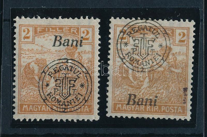 Nagyvárad 1919 Arató 2 db 2f eltolódott felülnyomással, Bodor vizsgálójellel