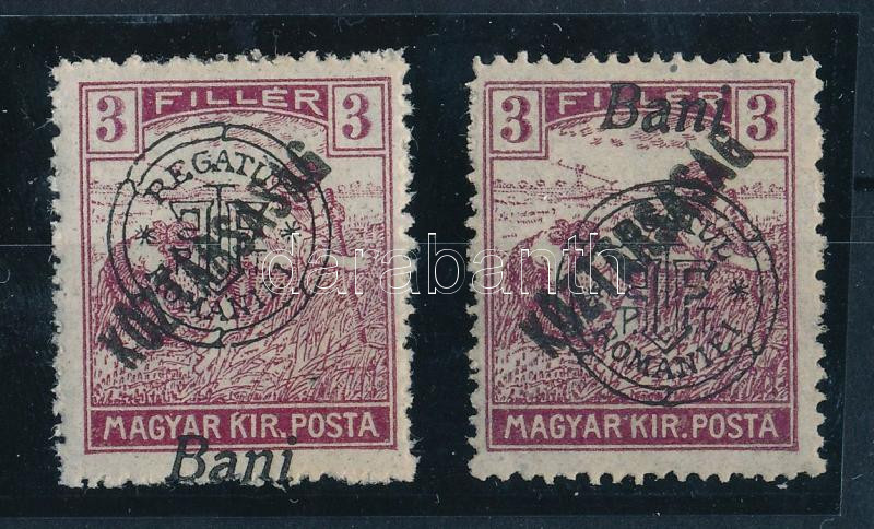 Nagyvárad 1919 Köztársaság/Arató 2 db 3f eltolódott felülnyomással, Bodor vizsgálójellel