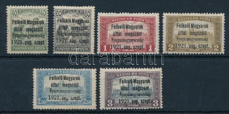 Nyugat-Magyarország I. 1921 6 db bélyeg Bodor vizsgálójellel (24.800)