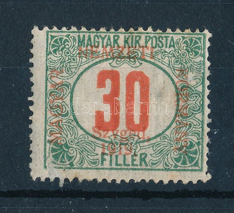 Szeged 1919 Portó 30f "Szvged" lemezhibával, Bodor vizsgálójellel (halvány rozsda / light stain)