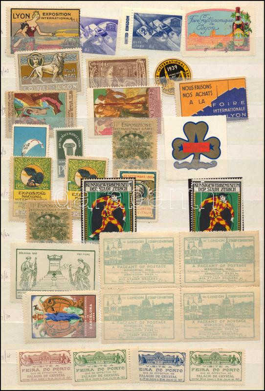 Régi, vegyes kiállítási levélzáró tétel két oldalas berakólapon / Collection of old exhibition expo and other poster stamps on two pages