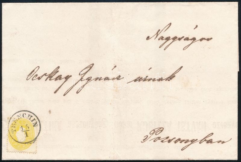 1862 2kr nyomtatványon / on printed matter "TRENCHIN" - Pozsony