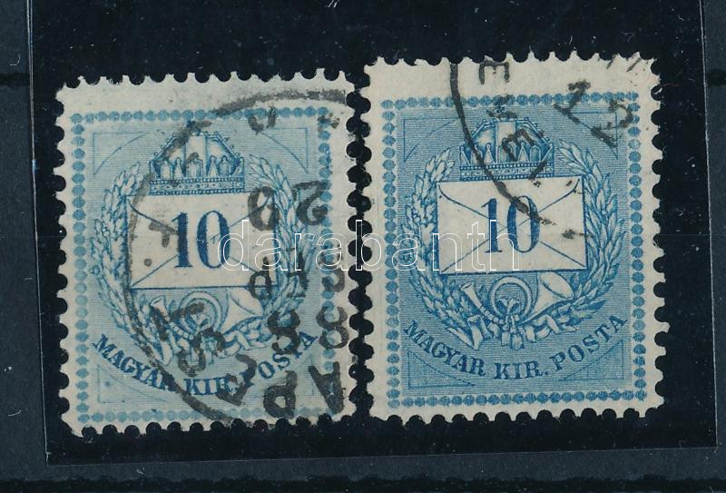 1881 2 x 10kr 13:12 1/2:13:12 1/2 pattintott vegyes fogazat, hosszúra fogazva