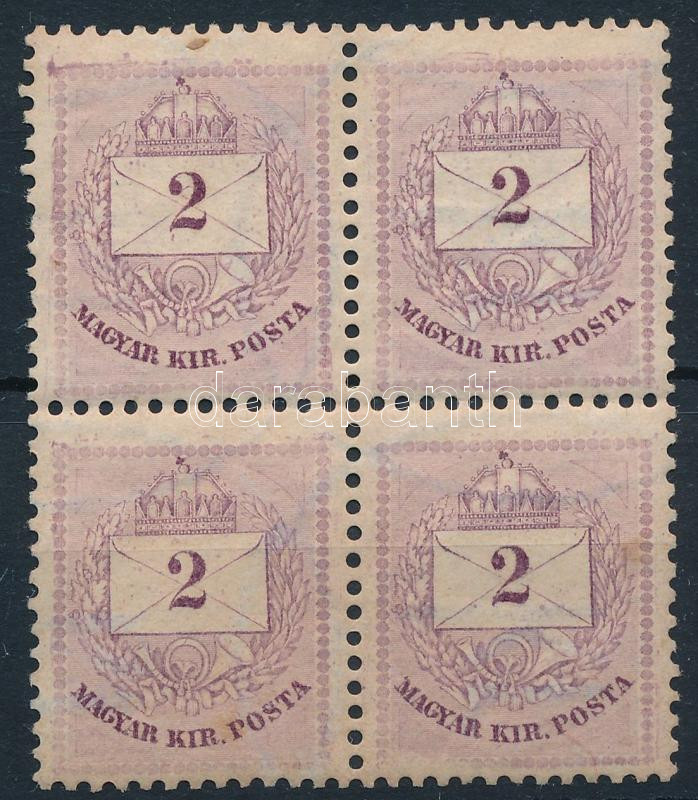 1881 2kr négyestömb: folt, karc, lemezhiba / block of 4 with plate faults