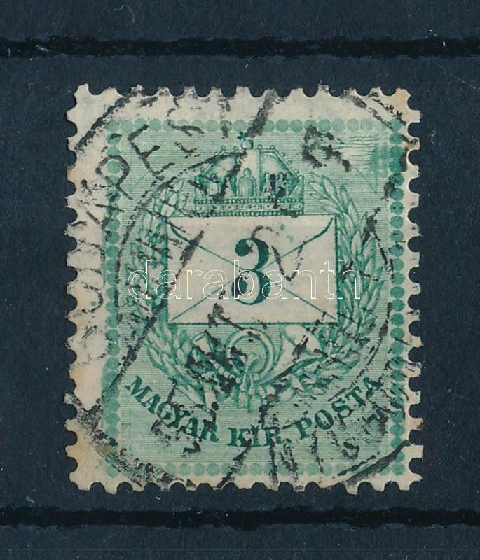 1881 3kr (22 II) jobb felső háromszögben és körülötte vésésjavítás