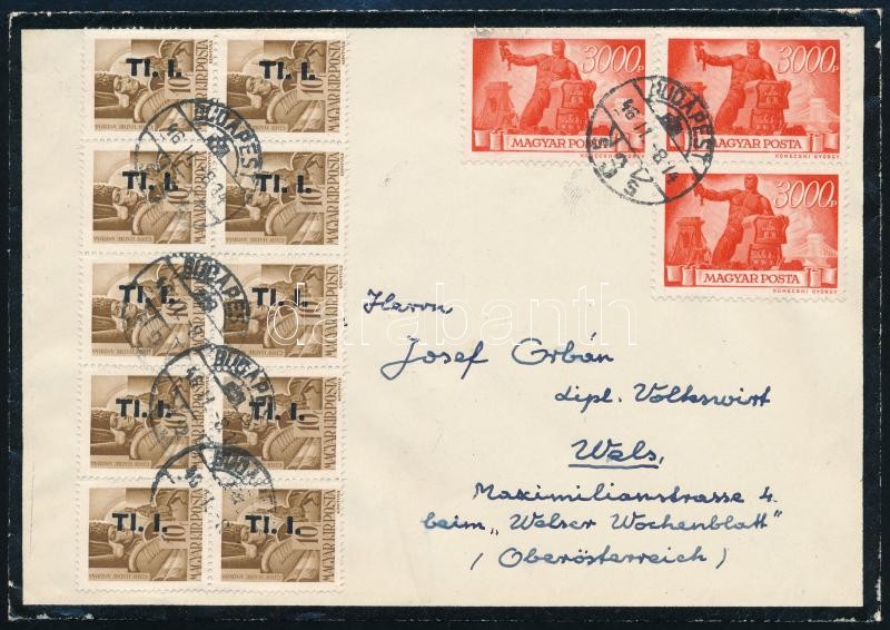 1946 (7. díjszabás) Levél 13 db bélyeggel Ausztriába / Cover with 13 stamps to Austria