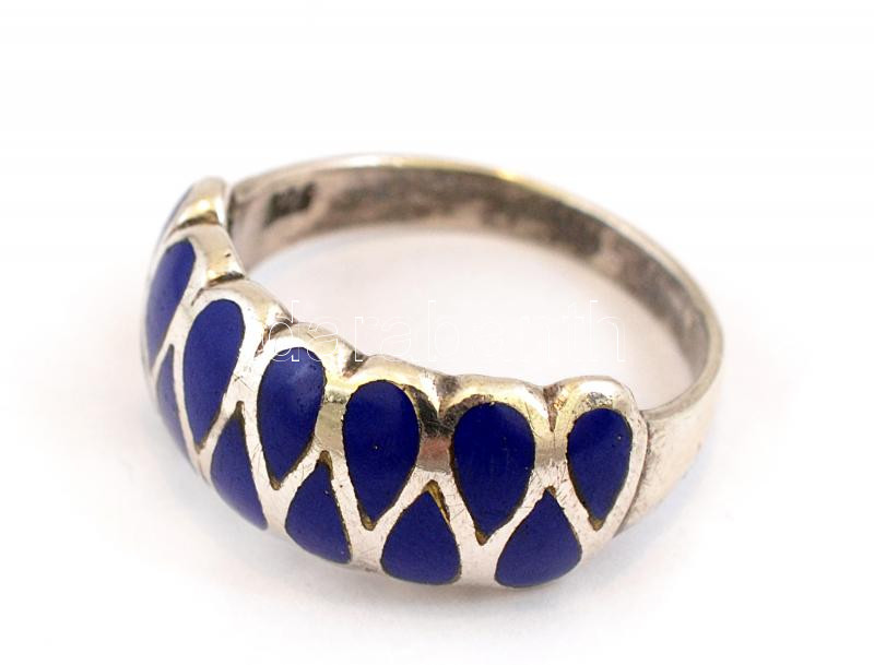 Ezüst(Ag) gyűrű, kék zománc díszítéssel, jelzett, méret: 52, bruttó: 2,5 g