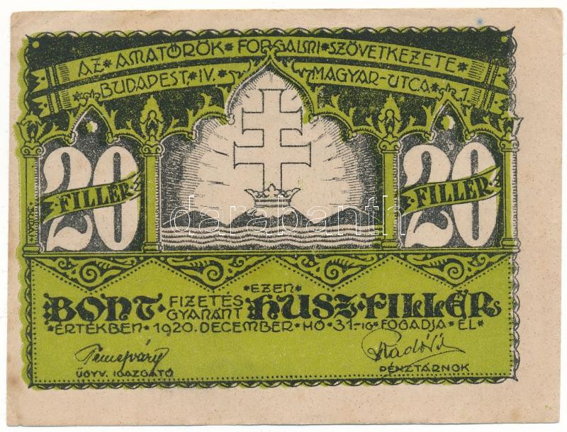1920. Budapest 1920.12.31. 20f "Amatőrök Forgalmi Szövetkezete" T:VF sarokhajlások, fo.