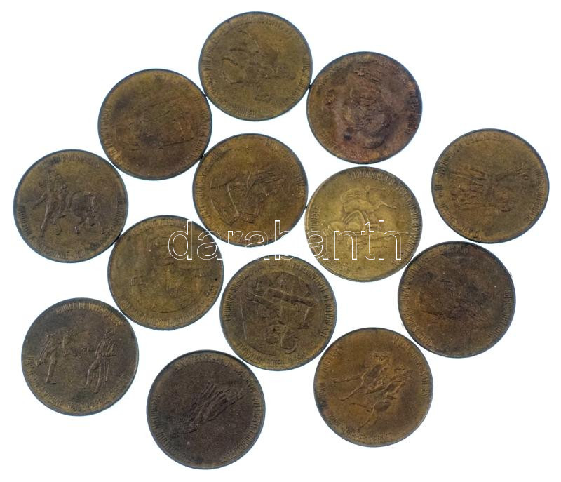 Franciaország 1969. 13db-os "Total" sárgaréz éremtétel T:XF patina, mindegyik hátoldalán ragasztó