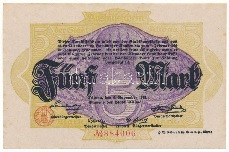 Német Birodalom 1918. Altona 5M "884006" T:AU