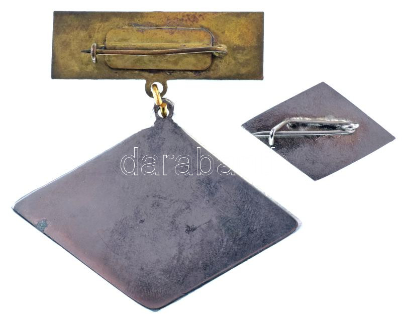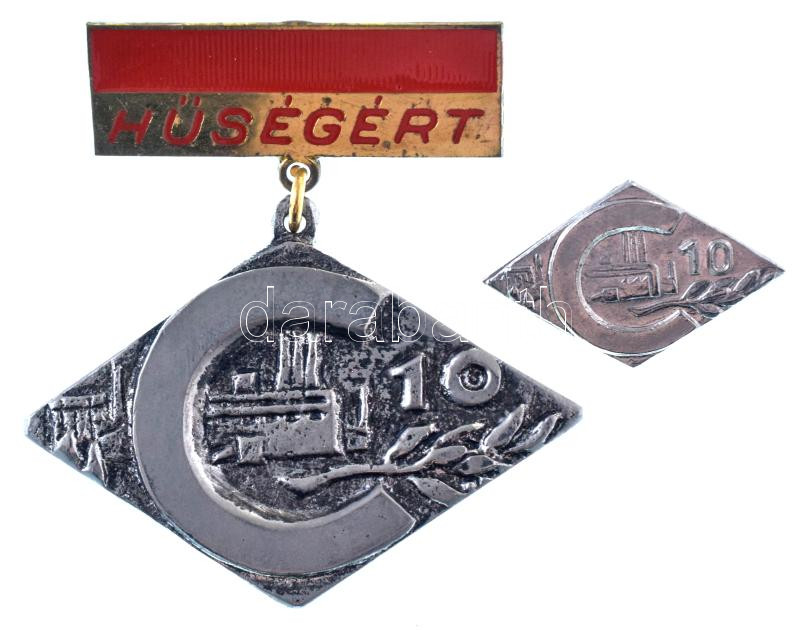 1975 k. "Hűségért / C10 (10 éves váci Dunai Cement Művek)" öntött, ezüstözött bronz törzsgárda jelvény festett függesztésen, miniatűrrel (57x65mm) T:AU