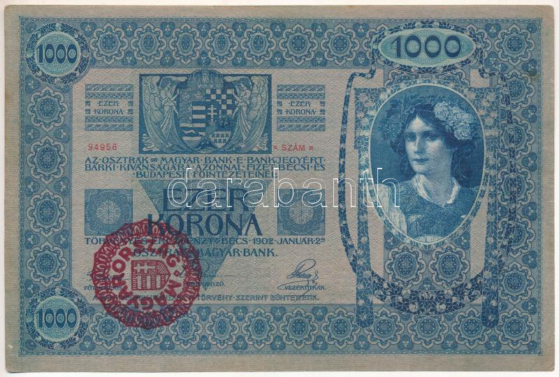 1902. 1000K "1509 94956" piros "MAGYARORSZÁG" felülbélyegzéssel T:F szép papír