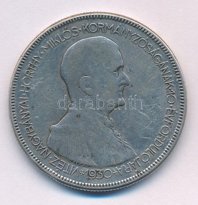 1930. 5P Ag "Horthy jobbra" T:F kis patina