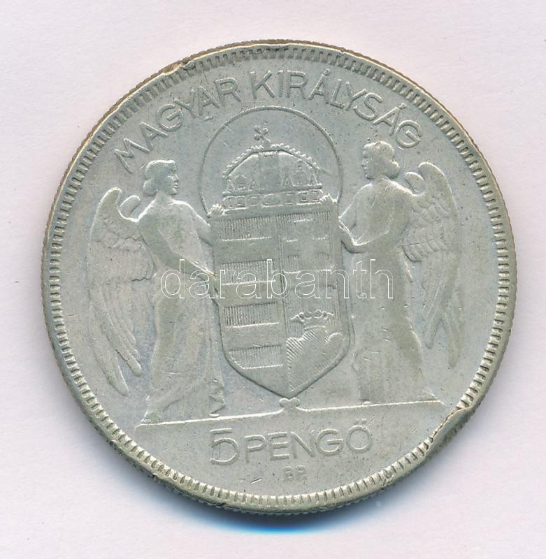1930. 5P Ag "Horthy jobbra" T:F patina, ph., karcos