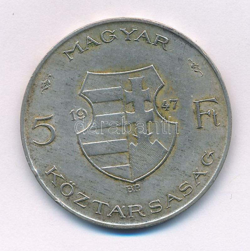 1947. 5Ft Ag "Kossuth" T:VF patina, kissé hajlott