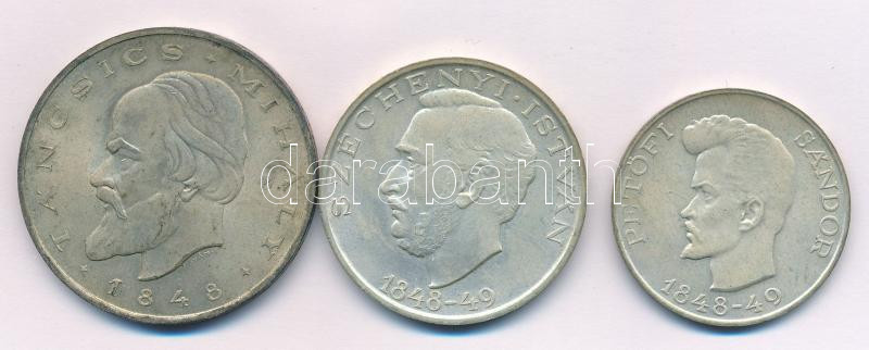 1948. 5Ft Ag "Petőfi" + 10Ft Ag "Széchenyi" + 20Ft Ag "Táncsics" "Szabadságharc sor" T:AU,XF patina