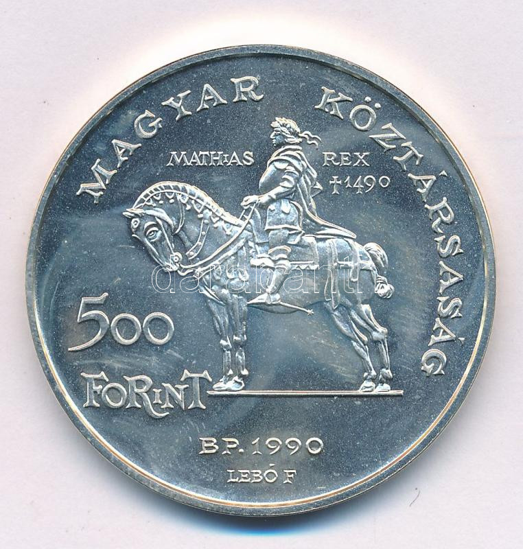 1990. 500Ft Ag "Mátyás király / Beatrix" kapszulában T:BU patina
