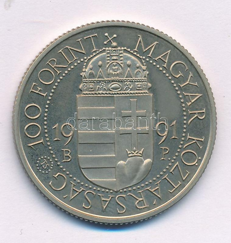 1991. 100Ft Cu-Ni "II. János Pál pápa látogatása" kapszulában T:AU (eredetileg PP) patina