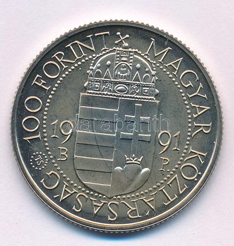 1991. 100Ft Cu-Ni "II. János Pál pápa látogatása" kapszulában T:BU patina