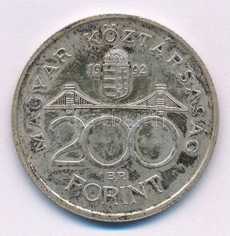 1992. 200Ft Ag "MNB" T:AU,XF patina