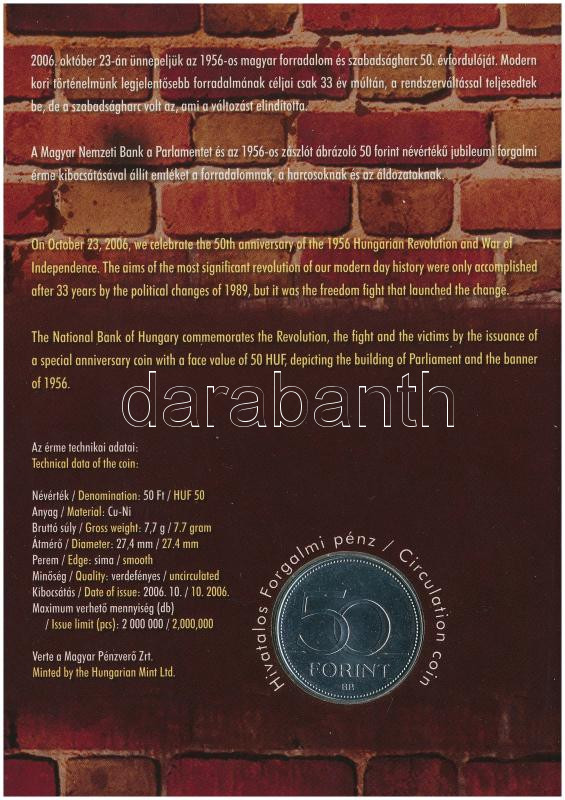 2006. 50Ft Cu-Ni "1956-os forradalom" emléklapon T:UNC