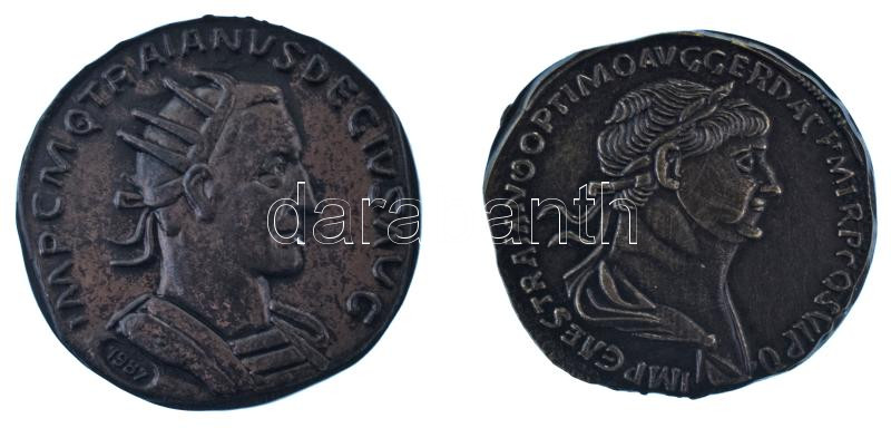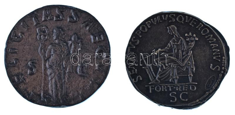 Római Birodalom 98-117 / Traianus "SENATVS POPVLVSQVE ROMANVS - FORT RED SC" Sestertius bronz replika kapszulában, "COPY" jelzéssel + Római Birodalom 249-251 / Traianus Decius "FELICITAS SAECVLI - SC" Sestertius bronz replika kapszulában, 1987-es évszámmal T:UNC